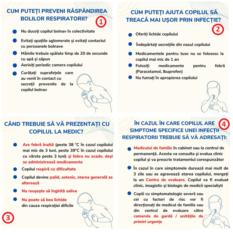Lista centrelor de evaluare care asigură asistența medicală pediatrică în cazul virozelor respiratorii este publicată pe pagina web a Ministerului Sănătății: https://www.ms.ro/centre-de-evaluare-pediatrica/