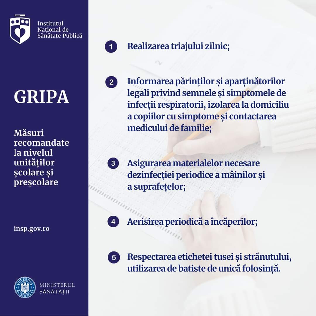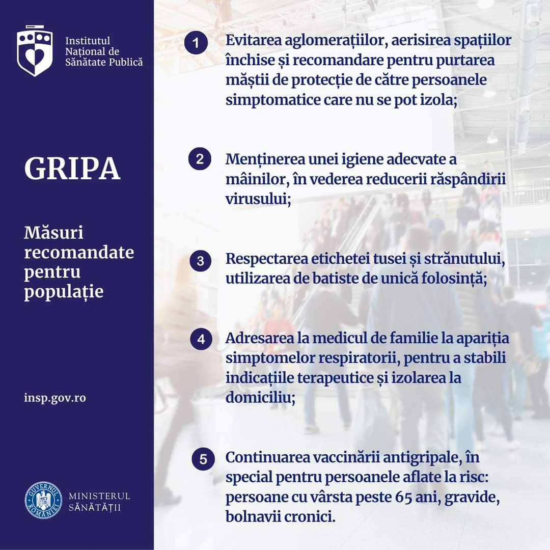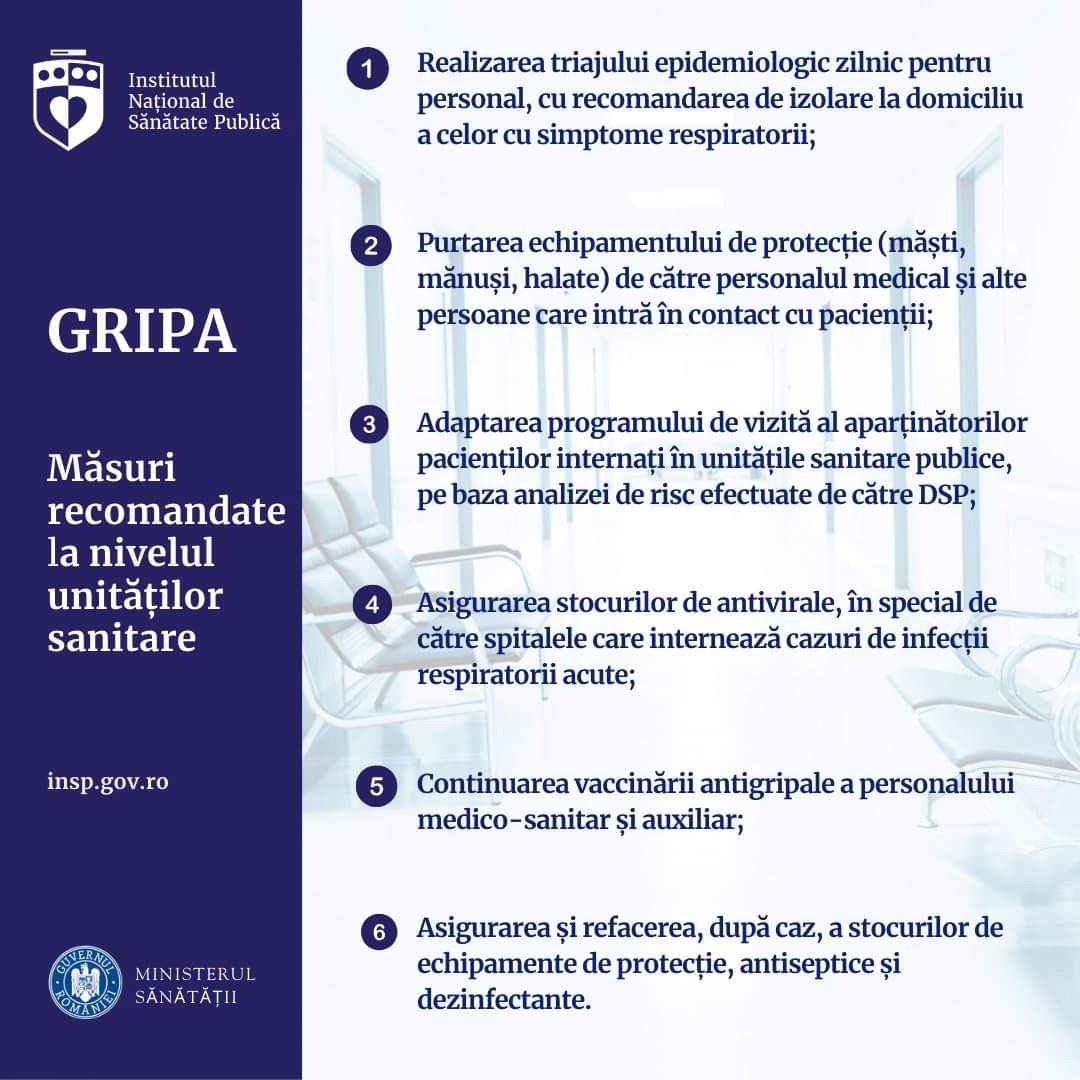 RECOMANDĂRI ÎN CONTEXTUL INSTITUIRII STĂRII DE ALERTĂ EPIDEMIOLOGICĂ DIN CAUZA GRIPEI