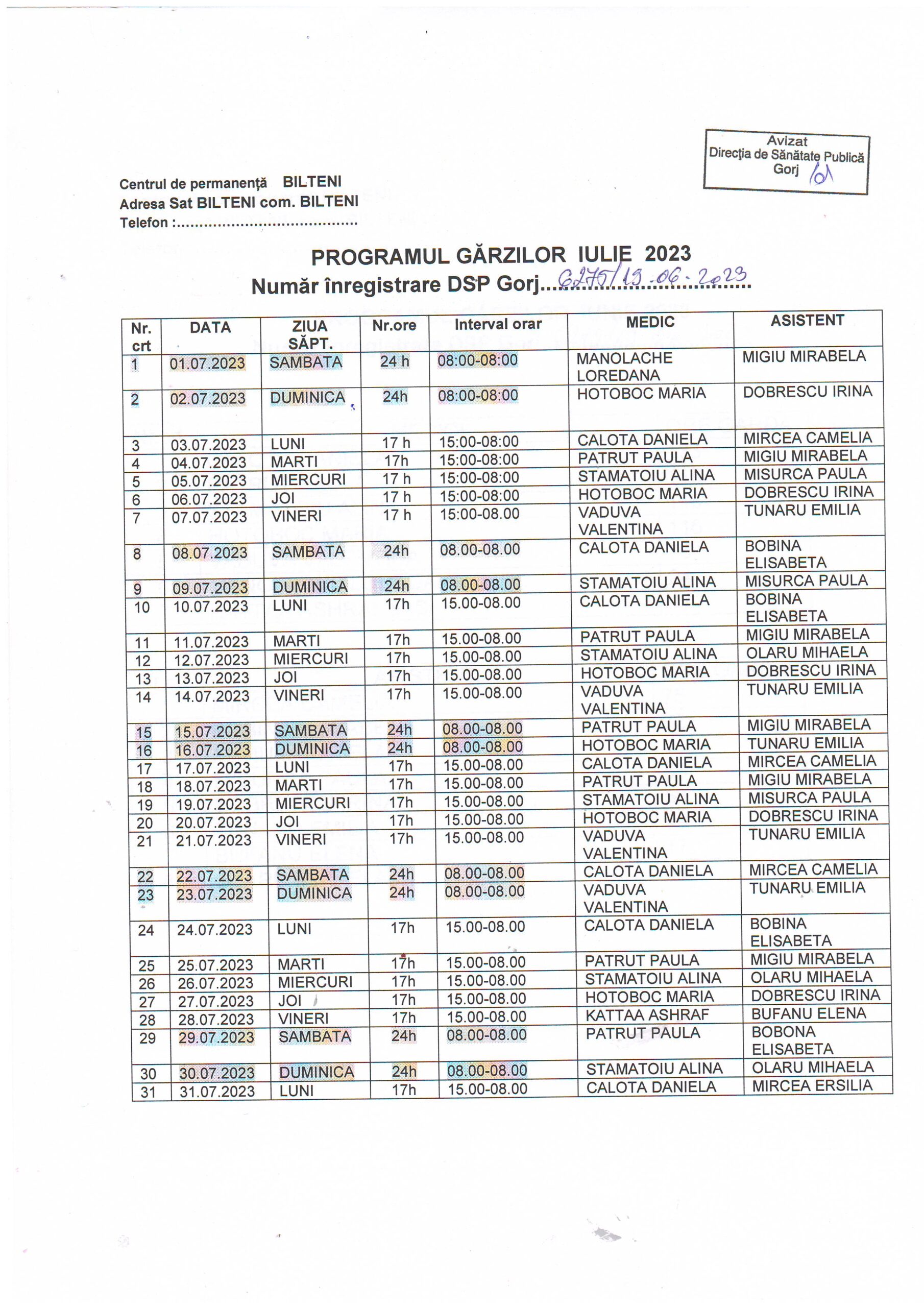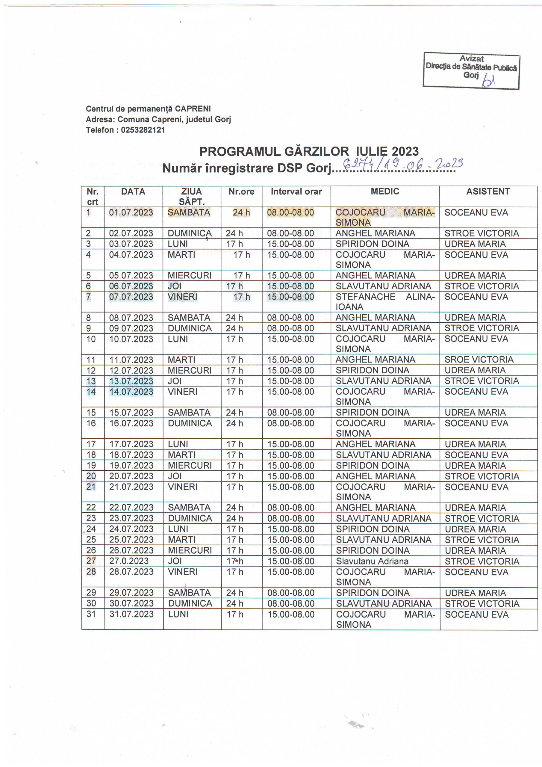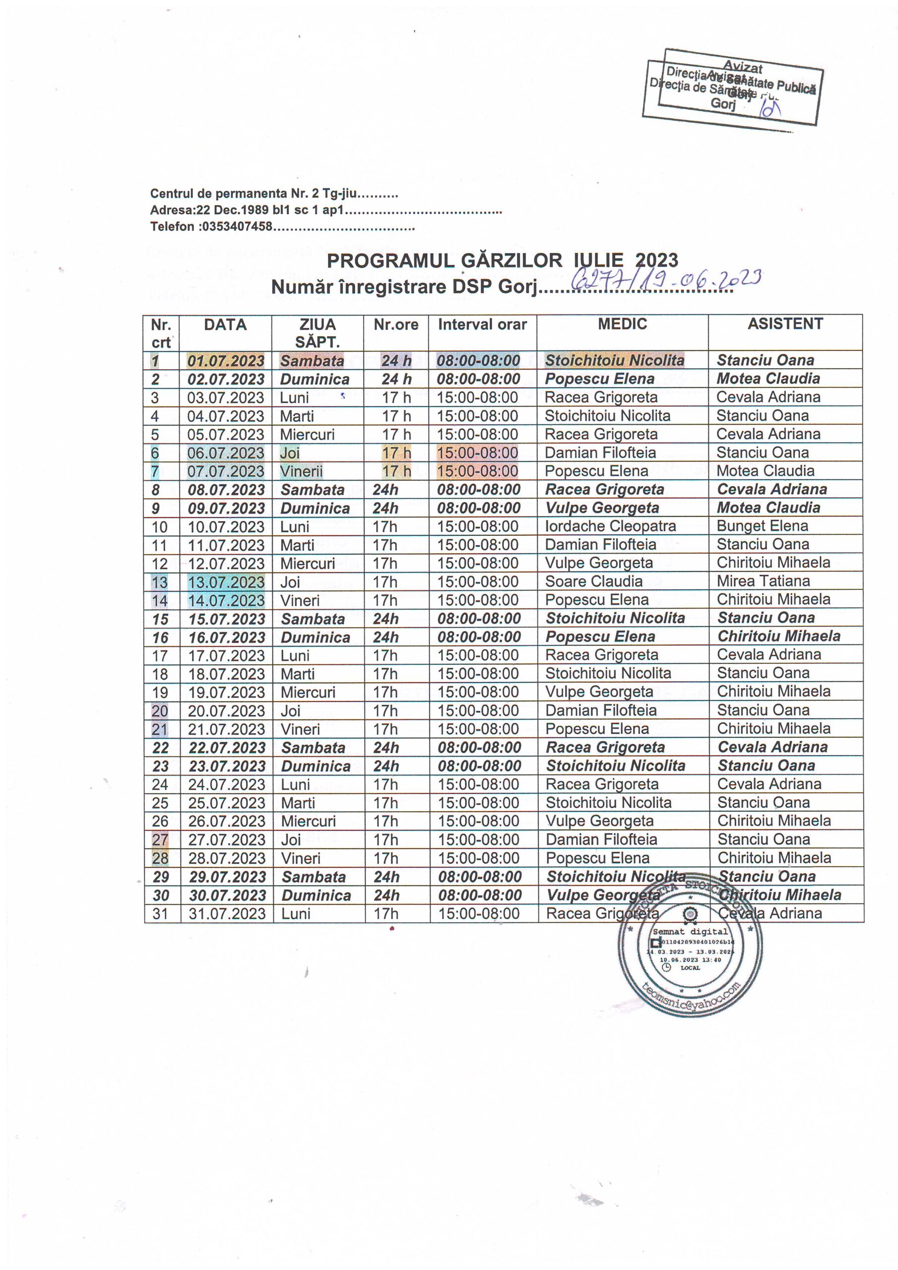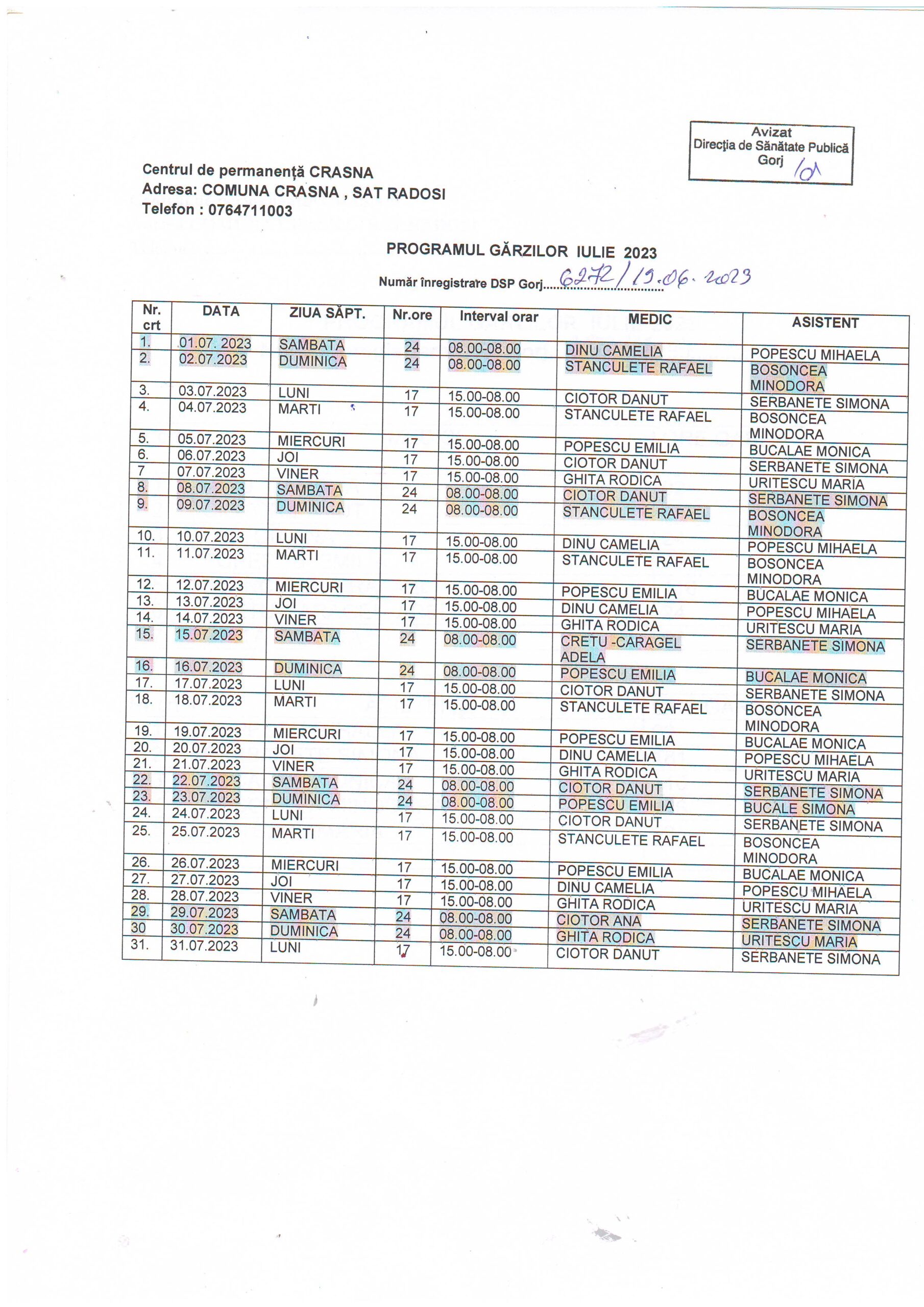 | 01 | CENTRUL DE PERMANENȚĂ SAMARINEȘTI • Dr. GIDOIU ADRIAN – medic coordonator program gărzi |