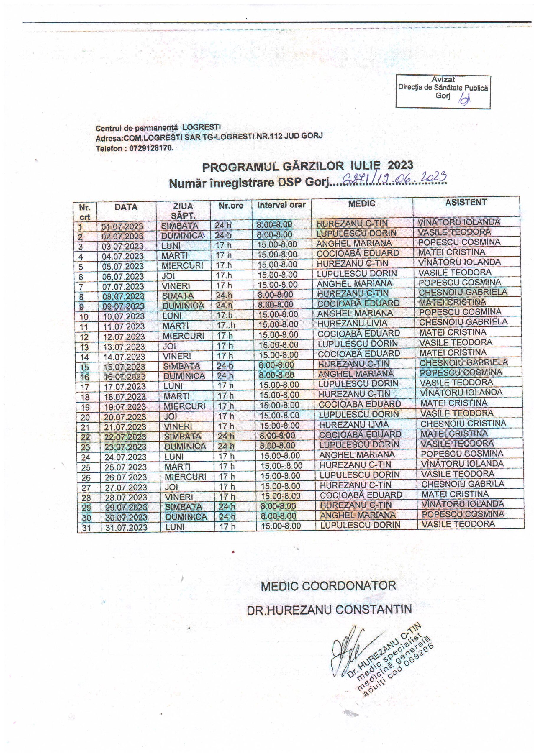 | 05 | CENTRUL DE PERMANENȚĂ LOGREȘTI • Dr. HUREZEANU CONSTANTIN – medic coordonator program gărzi |