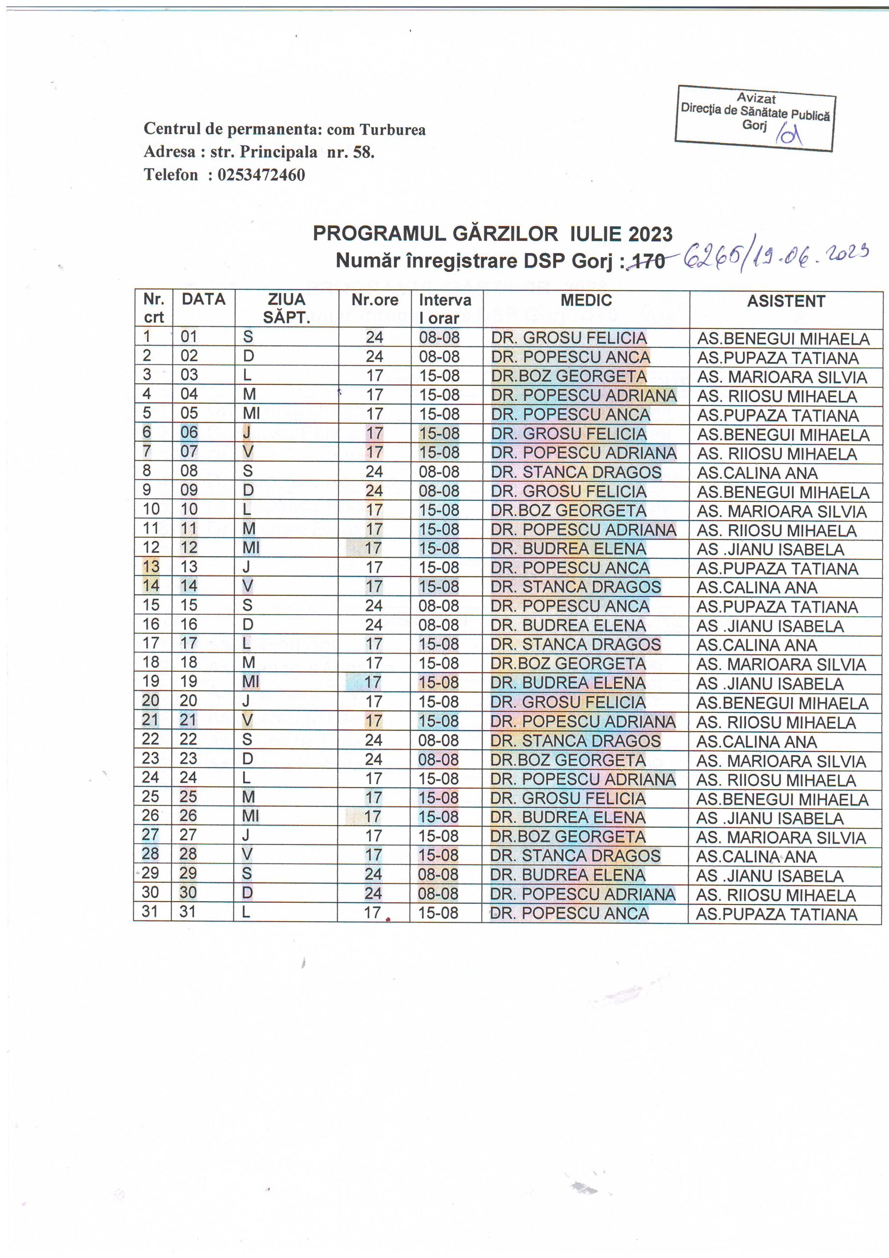 | 06 | CENTRUL DE PERMANENȚĂ TURBUREA • Dr. STANCA DRAGOS – medic coordonator program gărzi |